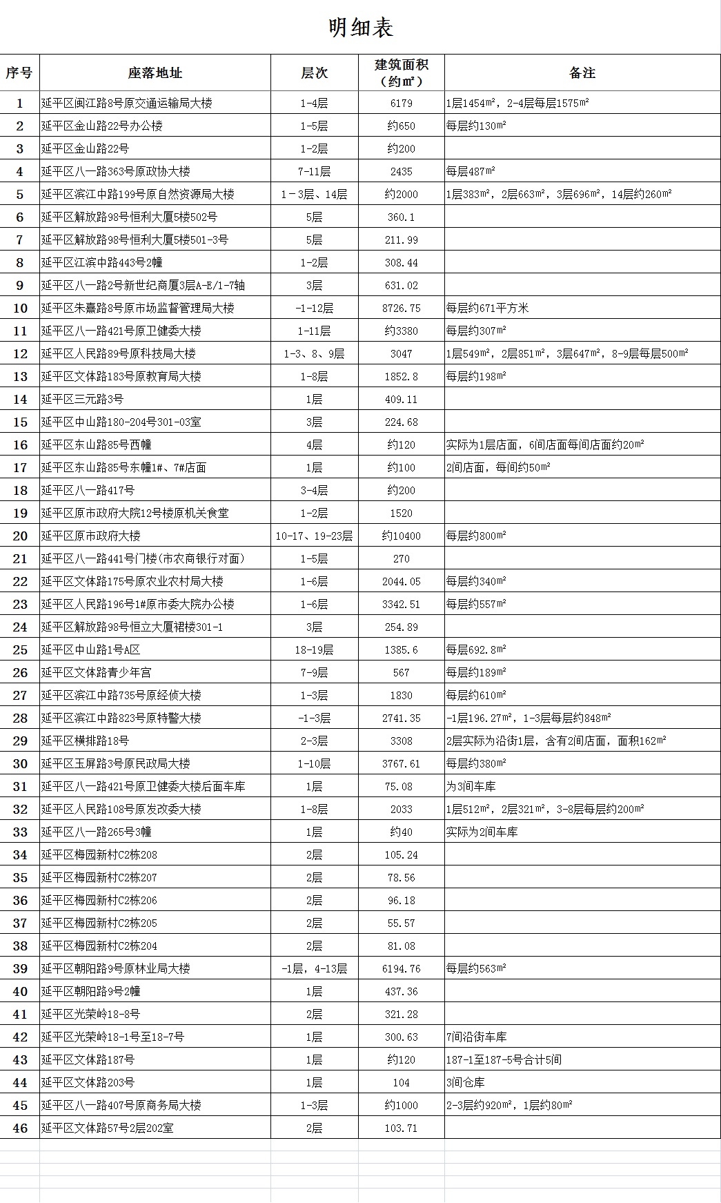 預(yù)招租明細(xì)表: