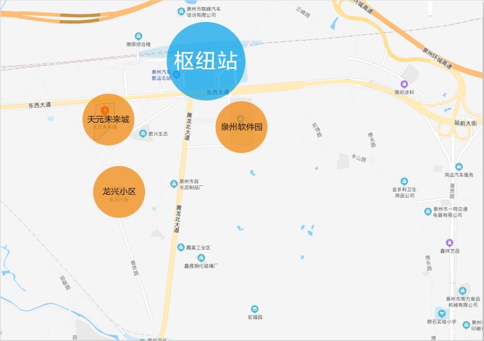 該項目毗鄰清源山風(fēng)景名勝區(qū),距離泉州中心市區(qū)約10公里,距離泉州開元寺、清真寺、閩臺緣博物館、西湖公園、豐澤廣場等主要景點約5-10公里(10-15分鐘車程);周邊交通網(wǎng)絡(luò)完善,距離泉州高速公路出入口(泉州北)約2公里,城東-北峰快速通道15分鐘直達泉州市政府,面前東西大道和南北大道連接泉州晉江機場、南安市、安溪、永春德化等縣市;周邊環(huán)境優(yōu)越,擁有東側(cè)廣場、南側(cè)廣場、站前景觀廣場,綠化面積達5萬多平方米;一公里范圍圈內(nèi),有天元未來城、萬科、龍興小區(qū)等房產(chǎn)項目,有泉州軟件園、泉州正骨醫(yī)院、910醫(yī)院等,有在建的西華洋滯洪區(qū)園區(qū)(約8000畝)及其它配套項目等。