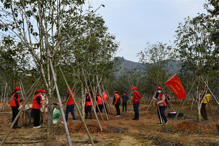 投資支部黨員服務隊來到高鐵延平站站后苗圃協(xié)助養(yǎng)護管理員完成園林綠化的養(yǎng)護工作?;顒又?,黨員們在養(yǎng)護管理員的指導下利用鋤頭、鐵鏟等工具給苗木施肥、除蟲、除草、加固樹木支架、清理落葉,大家分工明確、井然有序,發(fā)揚不怕臟、不怕累的優(yōu)良作風,很快將苗圃養(yǎng)護工作完成,經(jīng)過大家的辛勤勞動,苗圃環(huán)境得到了改善,苗圃面貌煥然一新。